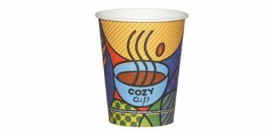 Bicchiere in carta colorato con rivestimento interno in PE riciclabile 235ml.