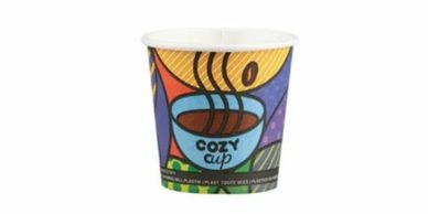 Bicchiere in carta colorato con rivestimento interno in PE riciclabile 118ml.